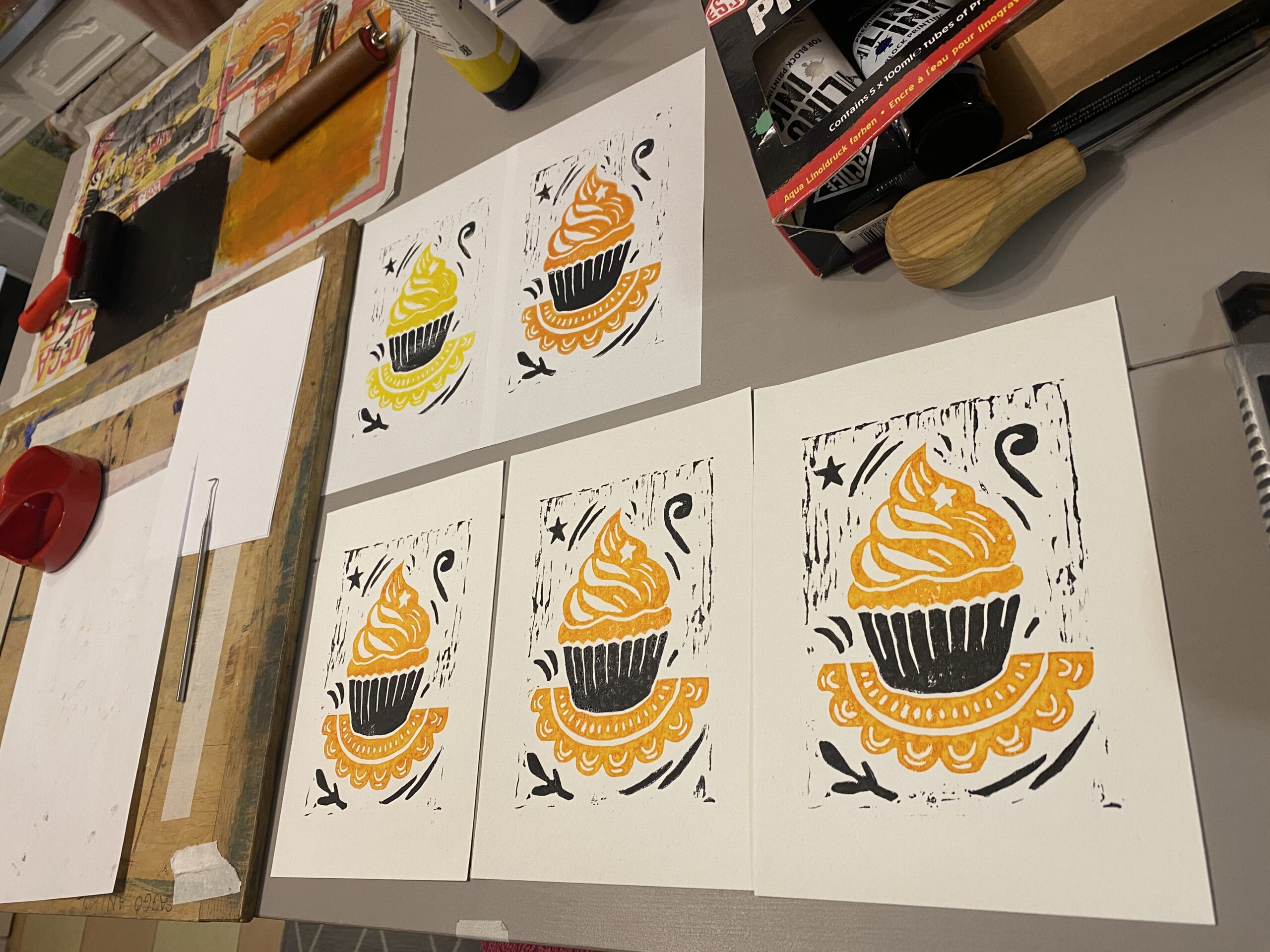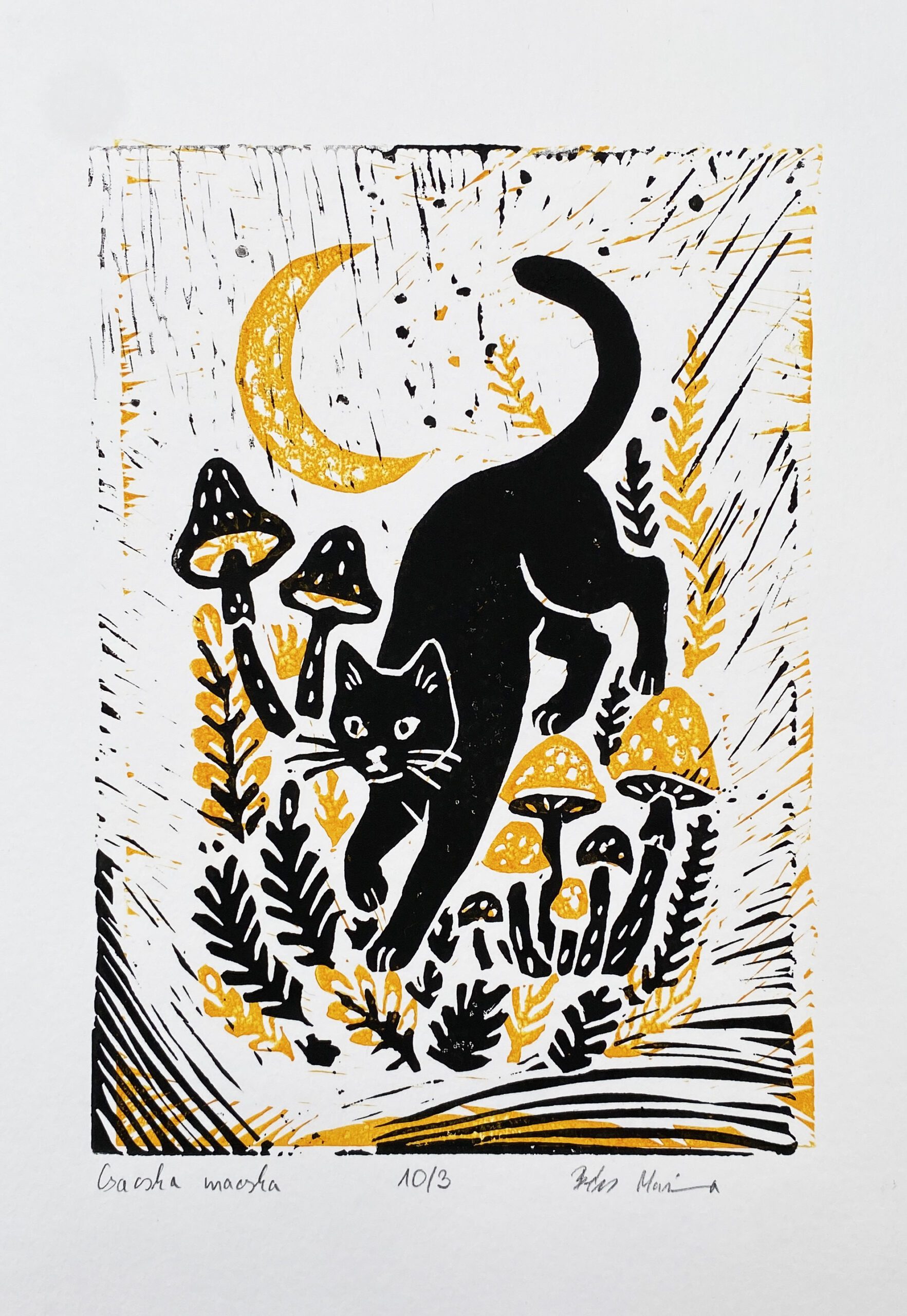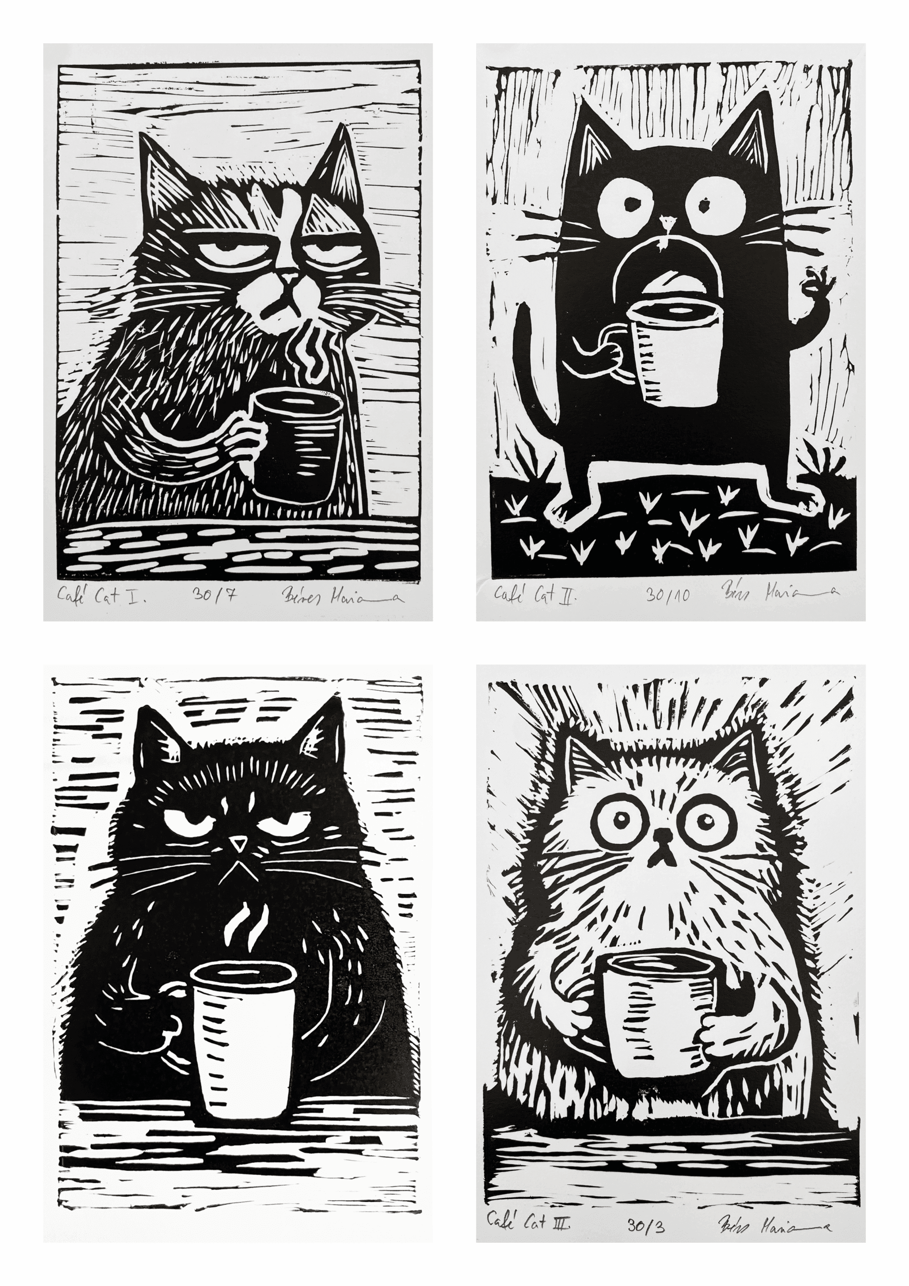 A munkák linómetszés vagy akvarell technikával születnek, minden esetben művészi igénnyel, kézzel készítve.